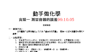 藉由量測『容器的體積』與其所『盛裝水的質量』,間接來瞭解各測量用容器的準確度。