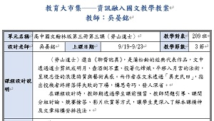 在課程設計時,教師期透過學生課前預習、教師問題引導、課間分組討論、競賽搶答、影片欣賞等方式,讓學生更深入了解本課精神及文章結構安排技法。