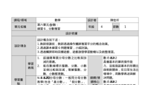 學習內容:N-4-5 同分母分數:一般同分母分數教學(包括「真分數」、「假分數」、「帶分數」名詞引入)。假分數和帶分數之變換。同分母分數的比較、加、減與整數倍。