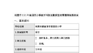 桃園市111年度國民小學創新科技互動課堂教學團隊競賽教案康軒版本,第九冊第八單元面積