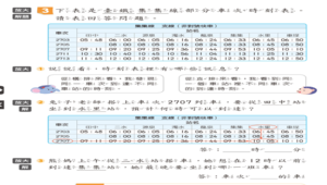 4.仿課本的情境出題,請學生回答,確認學生能正確報讀時刻表.並在小白板上自行列出算式並解題,再請學生發表解題想法,全班共同討論。