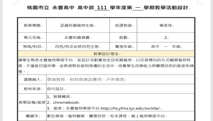 讓學生熟悉永豐植物學習平台,並設計活動實地走訪校園植物,以任務導向的方式觀察植物特徵,不僅能印證所學,並將視野拓展到身邊的生活中,培養學生自學能力與關懷自然的態度和情懷。