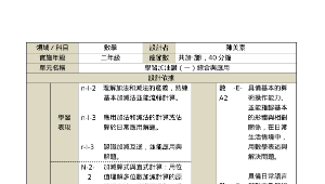 學習內容:N-1-2 加法和減法:加法和減法的意義與應用。含「添加型」、「併加型」、「拿走型」、「比較型」等應用問題。加法和減法算式。