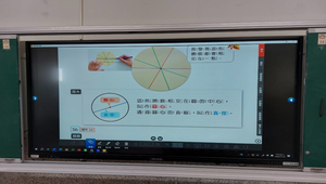 教師先請學生拿出附件9的圖卡,操作圖卡找出圓心,請學生觀察對摺後的圖卡,並請學生發表觀察後的想法,引導學生發現摺痕都相交於一點。教師讓學生多進行幾次對摺圓形圖卡再打開的活動,並用直尺和鉛筆畫出圓形圖卡上的每一條摺痕。教師請學生觀察畫出的摺痕,讓學生發現畫出的線(摺痕)會相交同一個點上。學生各自測量摺痕長度發現這些摺痕都一樣長,所以直徑都一樣長。教師歸納說明:同一個圓的直徑都一樣長,兩條直徑的交點是圓心。最後請學生操作觸屏回答老師問題。
