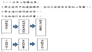 各小組針對淡水小鎮這一課做心智圖,小組成員將心智圖用平板拍照將影像投射到觸屏,發表心智圖並進行提問與問答。