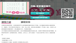 此網頁為哈客網路學院所設立之線上學習課程,其為集合項目客家文學的子項目,本課程為四縣腔發音,課程內容包含了解童謠與童詩的不同之處、童詩創作與童詩範例導讀、創作欣賞等等,課程目標包含學習欣賞童謠及童詩之美,以及學習自創童詩,適合有意學習客語或是想藉由網頁增加字彙量的初學者使用,教學者亦可提供此課程作為課後補充教材使用。