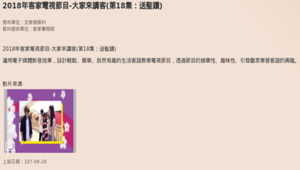 大家來講客為桃園市政府客家事務局文化館發行,指導單位為客家委員會、桃園市政府、桃園市議會。以客家話介紹桃園景點、美食、劇情為主。每一集的影片長度均在2分鐘左右,第十八集節目內容為介紹龍潭聖蹟亭。用生動有趣的情境方式帶入簡單的客語單字,使讀者能夠在了解桃園的同時,也學習客語,能更融入當地常用語。