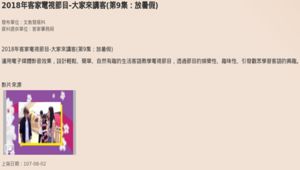 大家來講客為桃園市政府客家事務局文化館發行,指導單位為客家委員會、桃園市政府、桃園市議會。以客家話介紹桃園景點、美食、劇情為主。每一集的影片長度均在2分鐘左右,第九集節目內容為劇情片。用生動有趣的情境方式帶入簡單的客語單字,使讀者能夠在了解桃園的同時,也學習客語,能更融入當地常用語。