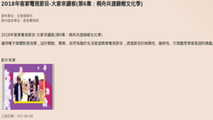 大家來講客為桃園市政府客家事務局文化館發行,指導單位為客家委員會、桃園市政府、桃園市議會。以客家話介紹桃園景點、美食為主。每一集的影片長度均在2分鐘左右,第六集節目內容為介紹桃園端午節之划龍舟比賽。用生動有趣的情境方式帶入簡單的客語單字,使讀者能夠在了解桃園的同時,也學習客語,能更融入當地常用語。