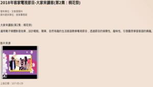 大家來講客為桃園市政府客家事務局文化館發行,指導單位為客家委員會、桃園市政府、桃園市議會。以客家話介紹桃園景點、美食為主。每一集的影片長度均在2分鐘左右,第二集節目內容為介紹桐花步道。用生動有趣的情境方式帶入簡單的客語單字,使讀者能夠在了解桃園的同時,也學習客語,能更融入當地常用語。