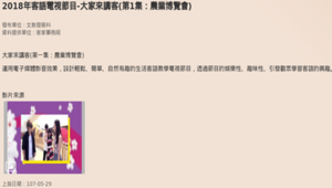 大家來講客為桃園市政府客家事務局文化館發行,指導單位為客家委員會、桃園市政府、桃園市議會。以客家話介紹桃園景點、美食為主。每一集的影片長度均在2分鐘左右,第一集節目內容為介紹桃園農博。用生動有趣的情境方式帶入簡單的客語句子,使讀者能夠在了解桃園的同時,也學習客語,能更融入當地常用語。