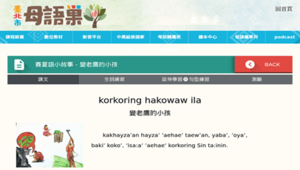網站為臺北市母語巢提供之線上數位教材,以族語故事的形式分享,本次主題為賽夏語小故事「變老鷹的小孩」,內容講述一位名叫ta:in的小孩為何變做老鷹飛向天空的故事,故事除賽夏語原文之外也提供中文翻譯對照,並且提供生詞練習與句型練習,也有測驗可以讓學習者測試學習效果。自學者可藉由網站學習賽夏語閱讀並練習單字及句型測驗,增加文法及單詞知識,教學者亦可以此為教材或是評量卷使用,並訓練學生閱讀能力。