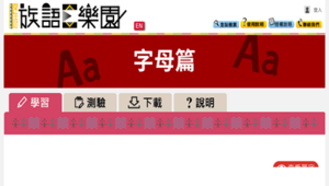 族語E樂園為原住民族委員會建置,向大眾推廣原住民語學習平台,此網址介紹站內建置的紙本教材-字母篇學習。