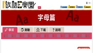族語E樂園為原住民族委員會建置,向大眾推廣原住民語學習平台,此網址介紹站內建置的紙本教材-字母篇學習。