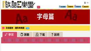 族語E樂園為原住民族委員會建置,向大眾推廣原住民語學習平台,此網址介紹站內建置的紙本教材-字母篇學習。