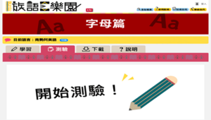 字母篇測驗網站,網站可切換為各族語言形式,一共有十六種不同區域的族語可切換。