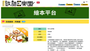 繪本平台之繪本資源源自於「族語E樂園」此網站由原住民族委員會建置向大眾推廣原住民語學習。平台資源之《明天去野餐》繪本重複使用「今天/明天的天氣怎麼樣呢?」的日常對答,引入天氣與時間的概念;再以「你喜歡什麼季節?」各自闡述對季節的感受。