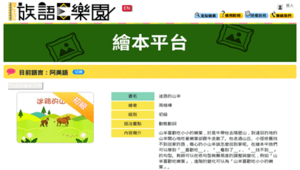 繪本平台之繪本資源源自於「族語E樂園」此網站由原住民族委員會建置向大眾推廣原住民語學習。平台資源之《迷路的山羊》繪本以山羊尋找小小的嫩葉為主軸,並用「走過......」與「看到了......」等敘述沿途所見之景物,讓讀者易於融入情境。