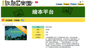 繪本平台之繪本資源源自於「族語E樂園」此網站由原住民族委員會建置向大眾推廣原住民語學習。平台資源之《青蛙的惡夢》繪本先以連三個「越......越......」的句型引入大雨來臨的異象,再以各種擬聲詞營造出令人感到不安的情境,最後以夢醒呼應主題,闡述對生態環境的憂患意識,希望大家都能重視環保。