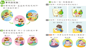 透過融入生活經驗的電子書的動畫,依照情境判斷事件發生的先後順序以及判斷時間的長短;再結合觀察情境圖,讓孩子分享自己有沒有為了做某一件事特別去注意時間的經驗。並且藉由綜合題型深化概念,應用在日常生活中;同時老師也配合觸控螢幕,增加課後學習的互動,以了解個別學生在此單元的學習情形。