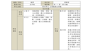 學習內容:N-5-3 公因數和公倍數:因數、倍數、公因數、公倍數、最大公因數、最小公倍數的意義。