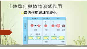 透過土壤鹽化引導學生了解滲透作用的對植物生長的影響,並進行滲透作用的實驗觀察