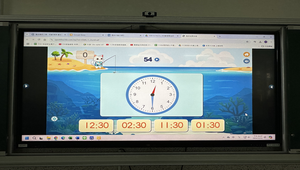 人的生活軌跡與時間密不可分,利用時鐘教具及大型觸屏的交互使用,讓學生對時鐘上時針及分針的位子加深印象,進而看到時鐘時針與分針位子能判讀正確的時刻。