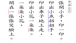 只有國字沒有注音的課文,讓孩子練習認國字,加強國字閱讀,在教學後評量學生認讀國字的能力,也可變成填注音的學習單。