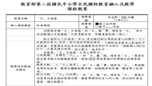 學習表現:2-Ⅴ-1 能體認全民國防的重要性,具備參與國防相關事務意願。