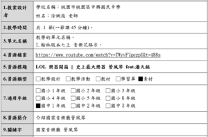 學習表現:音3-Ⅳ-1 能透過多元音樂活動,探索音樂及其他藝術之共通性,關懷在地及全球藝術文化。