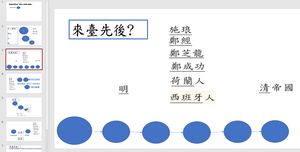 鄭成功時代對台灣初期發展有著顯著的貢獻,但是在他進來台灣之前還有許多外來民族對台灣也產生了非常多的文化影響,到底他們之間有什麼關係呢?讓我們來一起討論、利用關鍵字來完成基本歷史事件時間序,並完成指定的題目!