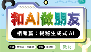 AI發展日新月異,隨著 ChatGPT 的誕生,生成式AI不僅刷新了人們對AI能力的想像,更讓AI走入生活的每個角落,影響範圍超越產業界,甚至涵蓋日常學習、創作與工作模式。相較於過去機器學習與深度學習的應用,生成式AI展現出更強的語言理解與創造能力,使AI不再只是輔助決策的工具,而是可以與我們互動、創作、解決問題的夥伴。本書以淺顯易懂的方式,帶領學生認識生成式AI的運作原理、應用場景與倫理思考,並透過實作體驗,幫助學生在與AI共存的時代,不僅能應用AI也能大致認識其運作原理,成為AI的聰明使用者與未來的創新者。