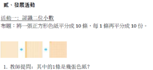 1-1. 透過平分色紙的情境,理解1/100 = 0.01的關係