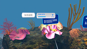 戴上VR頭盔展開海洋探險!觀眾從沙灘出發,協助受困、產卵的海龜完成淨灘任務並取得潛水裝備。接著潛入珊瑚礁區,尋找並認識十種海洋生物,如小丑魚、海葵、海膽、海星與珊瑚等,在探索生態奧秘的同時還能解開寶箱。