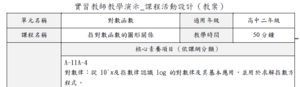 指數函數及其圖形,按比例成長或衰退的數學模型,常用對數函數的圖形。需使用電子白板呈現圖例及類題。