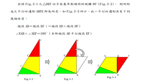 S-5-1 三角形與四邊形的性質:操作活動與簡單推理。含三角形三內角和為 180 度。三角形任意兩邊和大於第三邊。平行四邊形的對邊相等、對角相等。