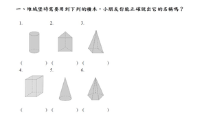 學習表現:s-Ⅰ-1 從操作活動,初步認識物體與常見幾何形體的幾何特徵。