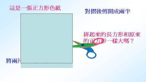 面積是用來表示達一固定區域的覆蓋程度或覆蓋大小的量感,在一、二年級的教材中,學生以對於基本平面圖形有了初步的認識,藉由鋪排「沒有空隙的圖形」及班級教學佈置等的活動情境,引導學生認識「周界」、「周長」,瞭解圖形經過切割、拼湊後,面積大小仍不變,進而形成面積保留概念。藉以間接比較面積大小,做為未來進入「面積」計算公式的準備。
