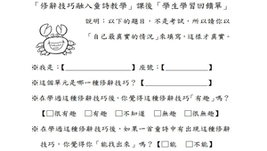 本學習單主要是透過學習單讓學生反省本活動"修辭技巧融入童詩教學"的學習歷程。